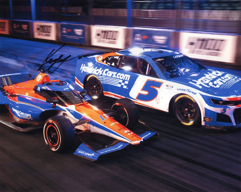 Autographed 2024 Kyle Larson #5 Indy 500 & Coca-Cola 600 (Double Driver) Signed 8x10 Inch Picture NASCAR Photo with COA