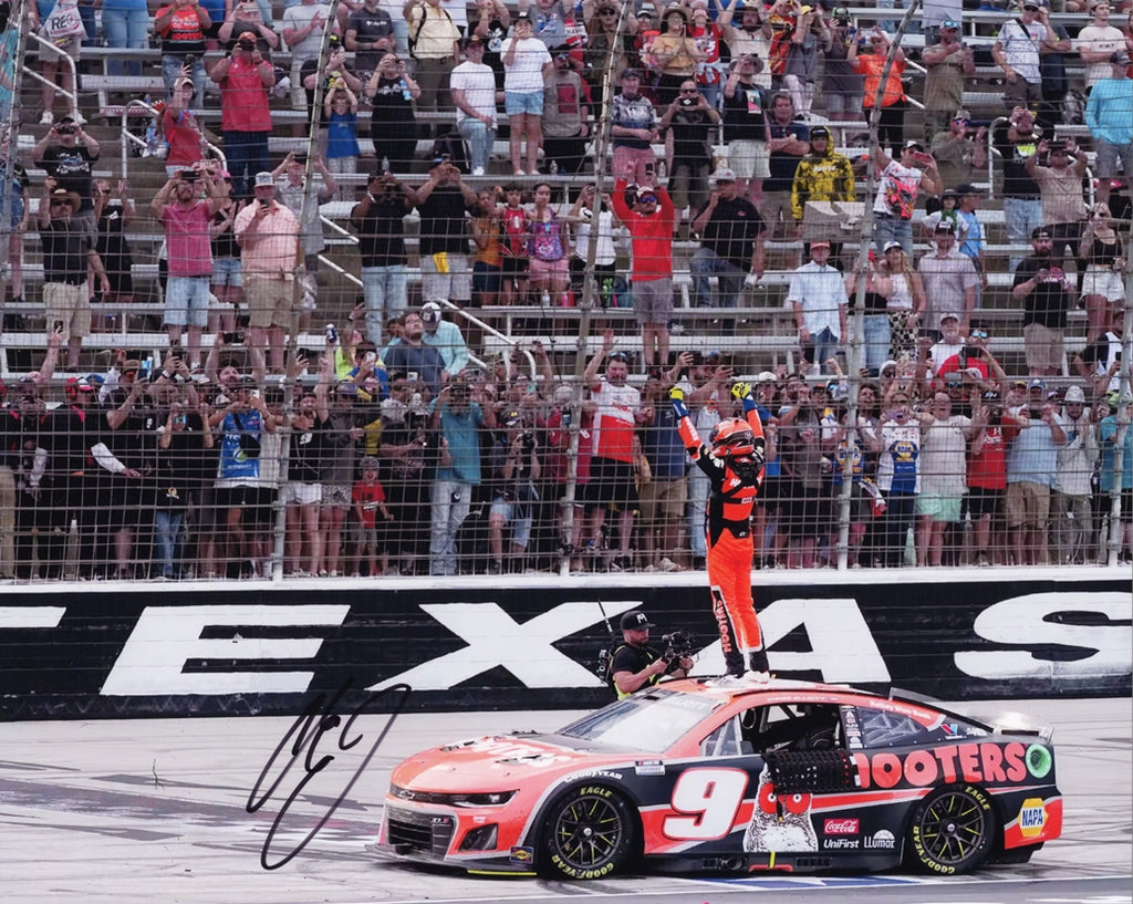 Autographed 2024 Chase Elliott #9 Hooters Racing - Texas Win (Victory Celebration) Signed 8x10 Inch NASCAR Glossy Photo with COA