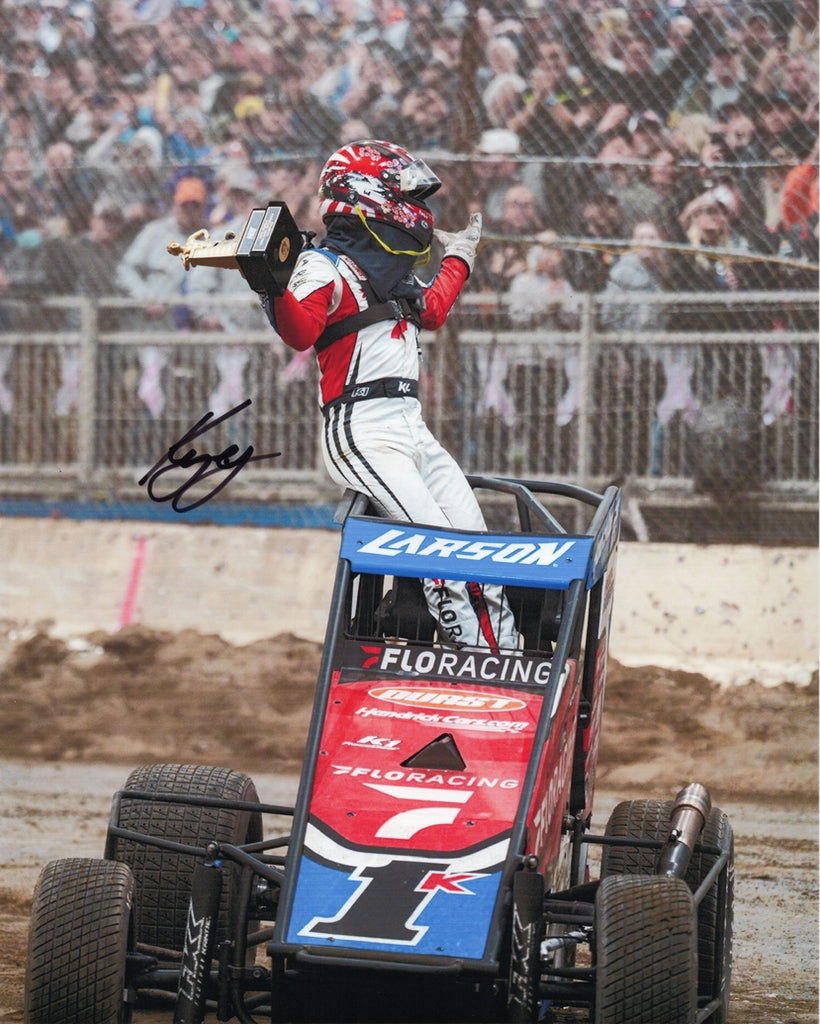 The bold signature adds a striking collectible touch, making it perfect for Larson fans, sprint car enthusiasts, and memorabilia collectors. Whether displayed in a racing room, office, or personal collection, this signed photo stands out with its vibrant detail and championship atmosphere. It also makes a great gift for any motorsports fan. A COA is included for authenticity, and we are always here to help with any questions.