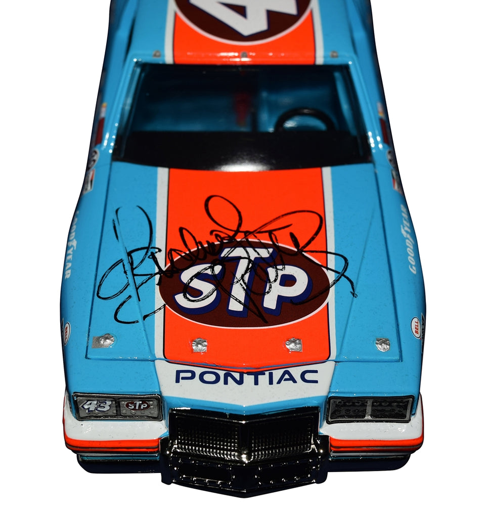 This autographed 1984 Richard Petty #43 STP Racing 200th Career Win raced version diecast celebrates one of the most historic victories in NASCAR history. Signed by The King himself, this Lionel NASCAR Classics 1/24 scale collectible replicates the exact look of Petty’s iconic Pontiac from the Daytona Firecracker 400, where he claimed his legendary 200th win in front of President Ronald Reagan.